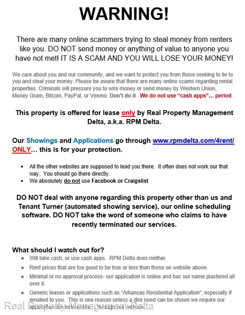 3/2 "Corporate" Rental -FURNISHED W/UTILITIES - River Access - $1885/mo - For SELF-SHOWINGS please visit "rpmdelta[DOT]com/4rent/" and click 'Schedule Showing' to do a self-service viewing at time most convenient for you (between 6am - 9pm). A link to the APPLICATION can also be found there. See pictures for fraud warning. Beautiful 3 bedroom, 2 bath home for corporate lease at 30 Old Ford Way in Heber Springs AR at Winkley Shoals (a.k.a. Swinging Bridge). Corporate lease, also available to individuals, necessarily includes all utilities, internet connection, lawncare/landscaping included, a short-term lease (no fee added), and complete furnishings provided (see pictures). Central HVAC, electric stove, refrigerator/freezer, stack washer & dryer, and dishwasher provided. NOTE: for some reason some sites list this ad content under 76 Swinging Bridge Rd. (across the road). This is definitely not that home. 30 Old Ford Way is indeed the proper address for this rental. $1785/mo with utilities & furnishings ~ $1600 security deposit ~ $1595/mo no utilities/internet. Sorry, no pets allowed. Documentation required for ESA's and Service Dogs. Lease Terms (at this rent): month-to-month lease, utilities included, furnished w/furnishings at showing Features of home are: - new appliances and furnishings; includes flat screen TV (living room) and washer/dryer (stack unit) - Private access to river (with some recreational features- see pictures) - Walk out access to fishing at Winkley Shoals - Cul-de-sac, no through traffic - Maintained and regulated neighborhood - Rear deck - Off-street private parking ~ Available without utilities and internet & a 6 mo. - 1 yr.. lease for $1595/mo. Furnishings remain and are not optional. ~ Security deposit, all leasing options: $1600 (conditions apply) ~ Available for Weekly Rental (w/utilities, furnished, w/utilities) at $520 per calendar week ($125 restocking/cleaning fee applies). Limit one week per 6 mo. period. * $100 per month rent discount (up to 1 yr. maximum) for First Responders, Active/Reserve Duty Service Members (individuals or affiliated groups), or Licensed Medical Professionals. * Included w/Rent ($45 value): electricity, natural gas, garbage (dumpster), no parking fees, water/sewer, internet connection (no warranties of speed), river access, No-fee reporting of tradeline and payments to Experian credit bureau (improve your credit score while renting!), HVAC filter delivery monthly, Quarterly pest control service, Online portal w/payment options of cash option at local outlets, e-check (no fee), and cards (fees apply), weekend & holiday maintenance emergency hotline. * Applications, online, are required for all adult applicants -ON THE WATER: Boat Ramp (0.3 miles), Dam Site Recreation Area (4.3 miles), Dam site Marina (4.6 miles), Sandy Beach (5.3 miles), Heber Springs Marina (7.8 miles), Ryder's Run Guide Service LLC - fly fishing (9.9 miles) -WATERFALLS: Bridal Veil Falls (5.4 miles), Cornelius Falls (5.4 miles), Bailey Falls (27.9 miles), Bear Pen Falls (46.6 miles) -HIKING: Sugarloaf Mountain Trail (0.9 miles), Sulphur Creek Trail (3.5 miles), Josh Park Memorial Trail (3.5 miles), Mossy Bluff National Nature Trail (3.6 miles), Collins Creek Trailhead (4.6 miles), Jeff Anderson Trail (4.6 miles), Big Creek Natural Area (9.3 miles) -DOWNTOWN HEBER SPRINGS (~3 miles): Spring Park, Ruland Junction Train Museum, Eagle Bank Park, restaurants, shops, historical sites -AIRPORTS: Heber Springs Municipal Airport (4.5 miles), Bill and Hillary Clinton National Airport (66.6 miles) * Sec. 8 not accepted for this home.