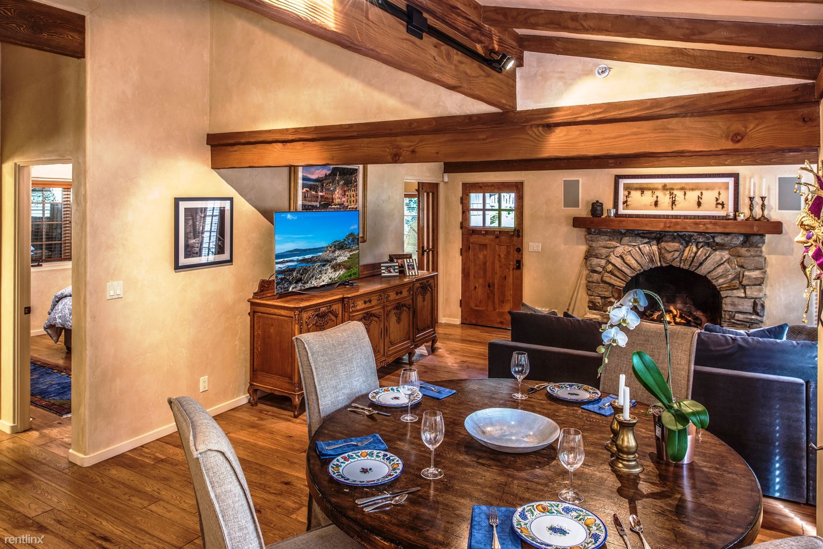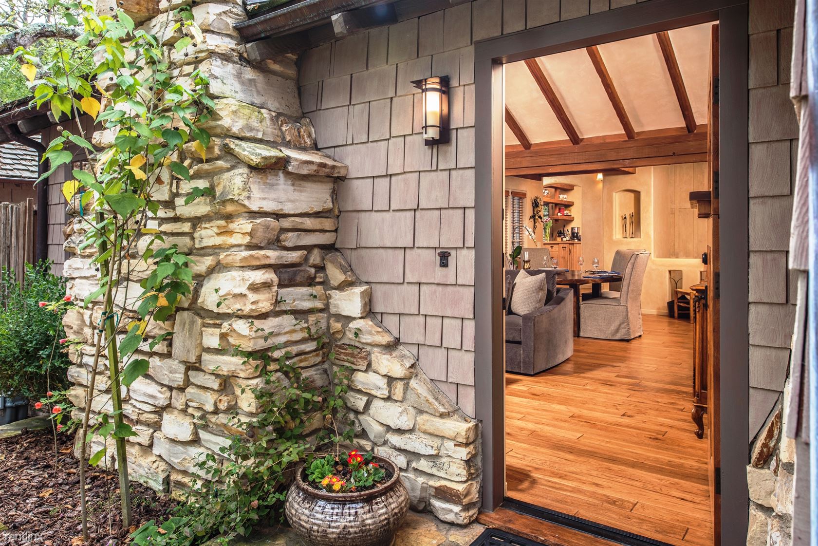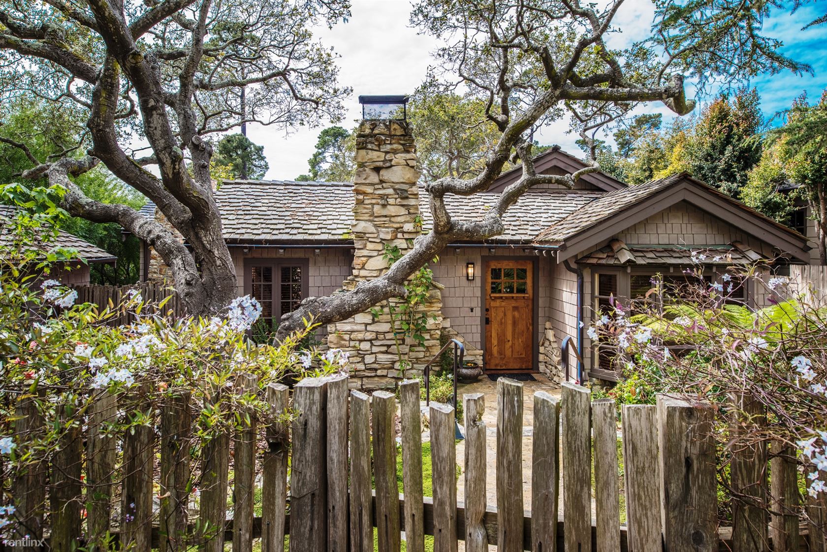 ***Please Do Not Disturb Tenants or Go Onto The Property Without the Listing Agent!*** ***The rental amount ranges from $6401 to $12,710 per month depending on length of stay and time of year*** A cottage with terraced patios and garden areas, renovated and enhanced in Old World style but with all the modern conveniences. Just a 5-minute walk to shopping and dining in downtown Carmel, and 10 minutes by car to golf and sightseeing in Pebble Beach, vintage Victorian homes and Monarch butterflies in Pacific Grove, or to historic Cannery Row and the Monterey Bay Aquarium. A sophisticated rustic ambiance greets visitors entering the 2,100-square-foot residence, with hand-scraped hardwood floors, plaster walls and open-beam ceilings in addition to vintage furnishings and original paintings, photography and sculptures throughout. Ferns and rhododendron frame the flagstone walkway to the front door, opening to the living room has a gas fireplace and a 42-inch HDTV. Dining area looks out on the garden and patio area outside. French doors from the family room open onto a brick patio with comfortable seating, a Weber charcoal barbecue, and an outdoor fireplace. The kitchen has a four-burner Viking gas range. A whole-house sound system is controlled from the pantry. The family room, has a Carmel stone gas fireplace, 42-inch HDTV. A small sitting room can be used for extra sleeping, with a daybed and armoire. Next to it is a bedroom with queen bed. A hallway bathroom has a tub/shower combination. The master bedroom suite has a king bed. The en suite bath has a shower with a built-in seat and steam option and a separate jetted tub. The bedroom downstairs has a four-poster king bed and 42-inch HDTV with windows looking out onto the back yard garden. A laundry room with washer and dryer and storage space are also on this level. Parking for one small vehicle is available in the driveway, with additional parking on the street. Small non-barking dogs will be considered. (RLNE4122678)