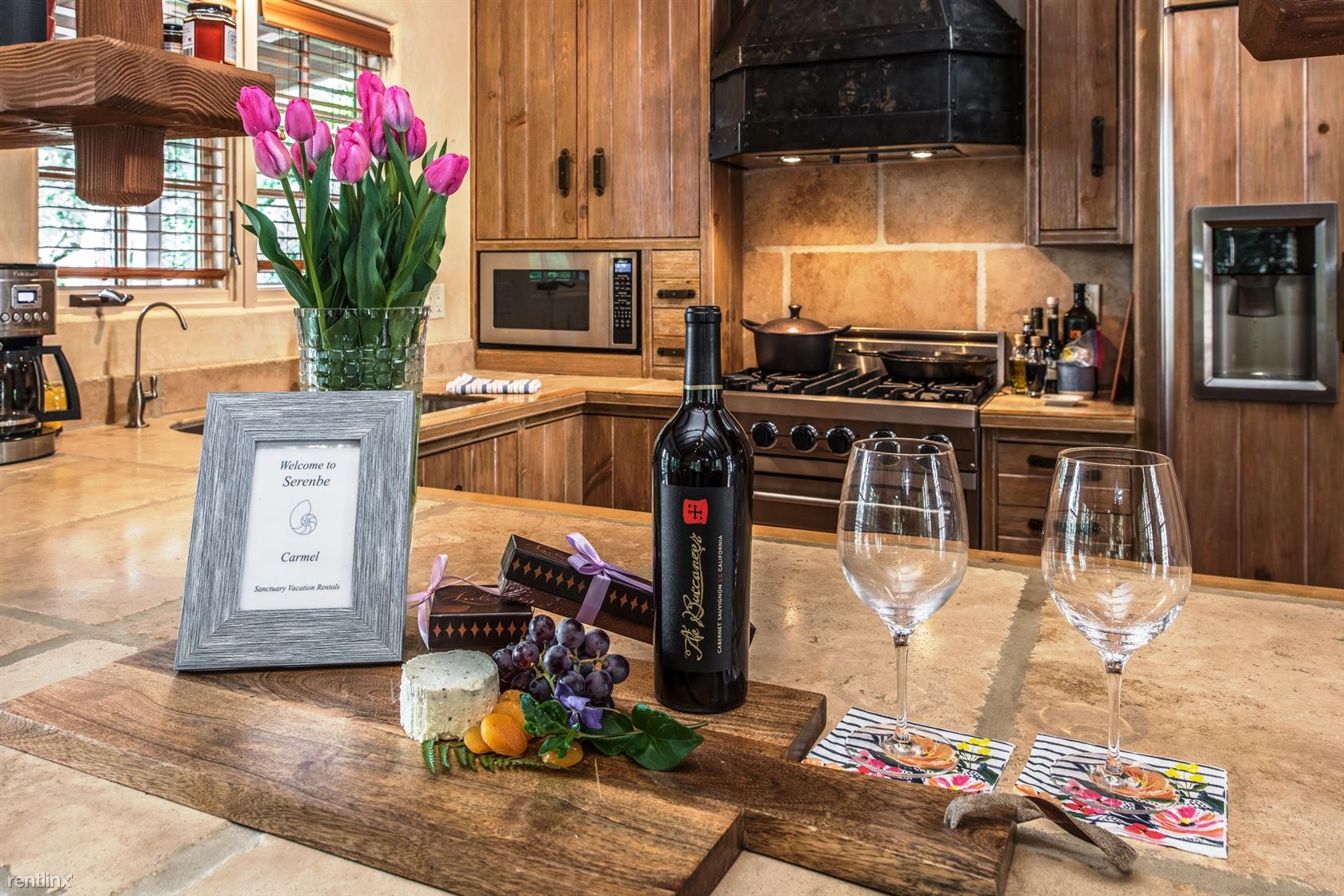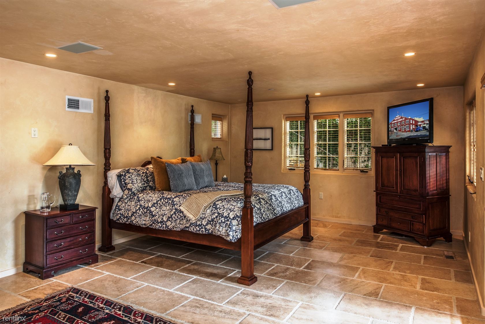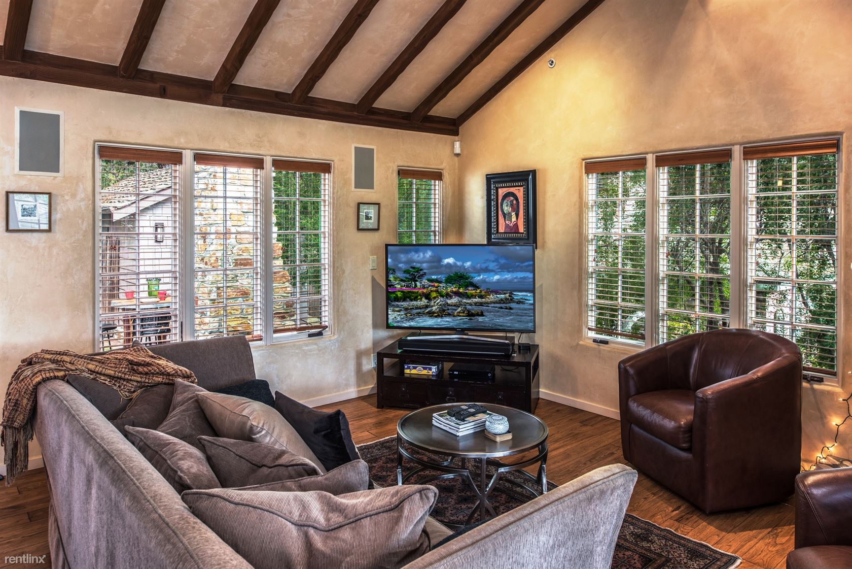 ***Please Do Not Disturb Tenants or Go Onto The Property Without the Listing Agent!*** ***The rental amount ranges from $6401 to $12,710 per month depending on length of stay and time of year*** A cottage with terraced patios and garden areas, renovated and enhanced in Old World style but with all the modern conveniences. Just a 5-minute walk to shopping and dining in downtown Carmel, and 10 minutes by car to golf and sightseeing in Pebble Beach, vintage Victorian homes and Monarch butterflies in Pacific Grove, or to historic Cannery Row and the Monterey Bay Aquarium. A sophisticated rustic ambiance greets visitors entering the 2,100-square-foot residence, with hand-scraped hardwood floors, plaster walls and open-beam ceilings in addition to vintage furnishings and original paintings, photography and sculptures throughout. Ferns and rhododendron frame the flagstone walkway to the front door, opening to the living room has a gas fireplace and a 42-inch HDTV. Dining area looks out on the garden and patio area outside. French doors from the family room open onto a brick patio with comfortable seating, a Weber charcoal barbecue, and an outdoor fireplace. The kitchen has a four-burner Viking gas range. A whole-house sound system is controlled from the pantry. The family room, has a Carmel stone gas fireplace, 42-inch HDTV. A small sitting room can be used for extra sleeping, with a daybed and armoire. Next to it is a bedroom with queen bed. A hallway bathroom has a tub/shower combination. The master bedroom suite has a king bed. The en suite bath has a shower with a built-in seat and steam option and a separate jetted tub. The bedroom downstairs has a four-poster king bed and 42-inch HDTV with windows looking out onto the back yard garden. A laundry room with washer and dryer and storage space are also on this level. Parking for one small vehicle is available in the driveway, with additional parking on the street. Small non-barking dogs will be considered. (RLNE4122678)
