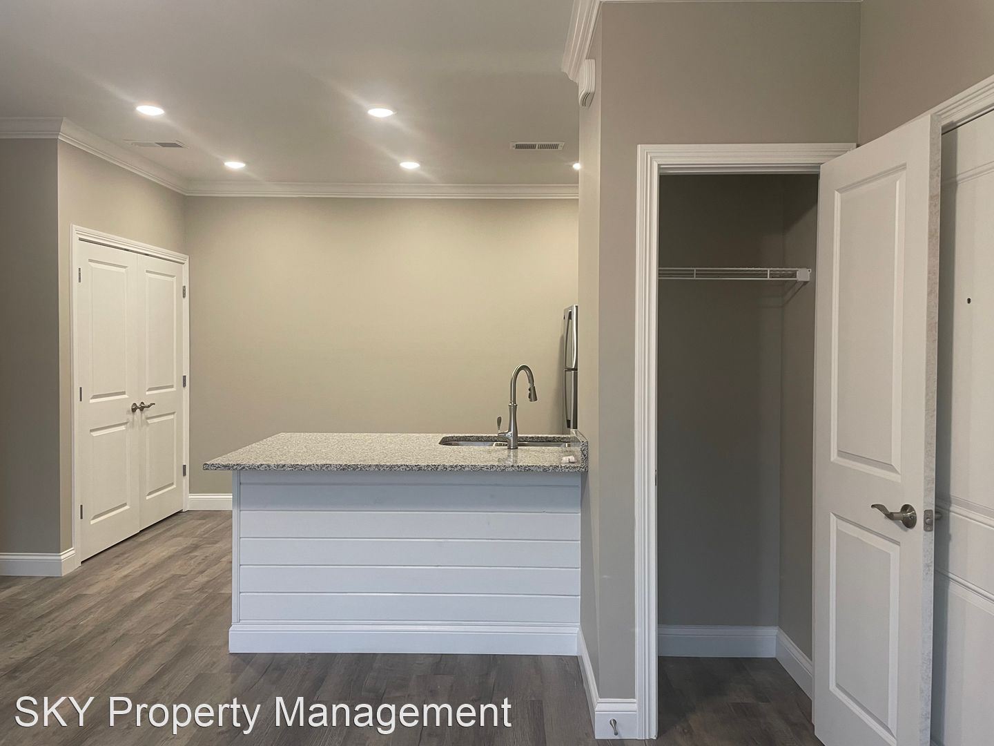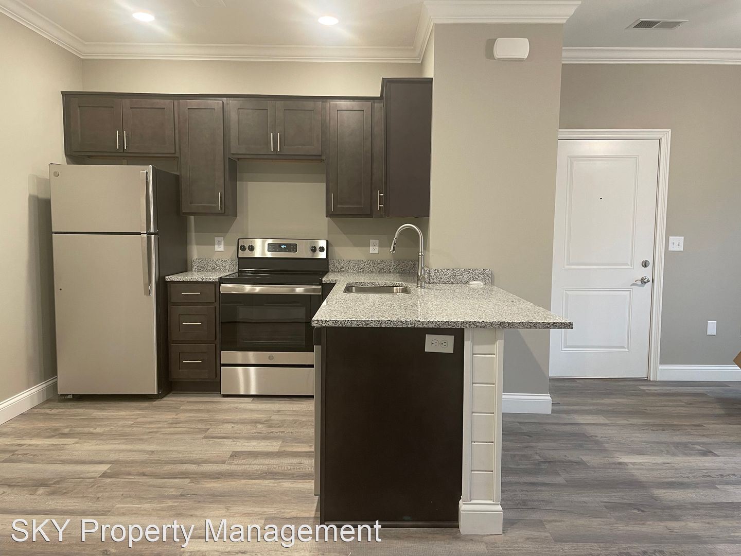 The Flats - Second-Floor Open Concept Flat Stainless Steel Kitchen Appliances Granite Counters Side by Side Washer and Dryer Connection Hardwood Laminate Throughout Patio with Outdoor Storage Closet