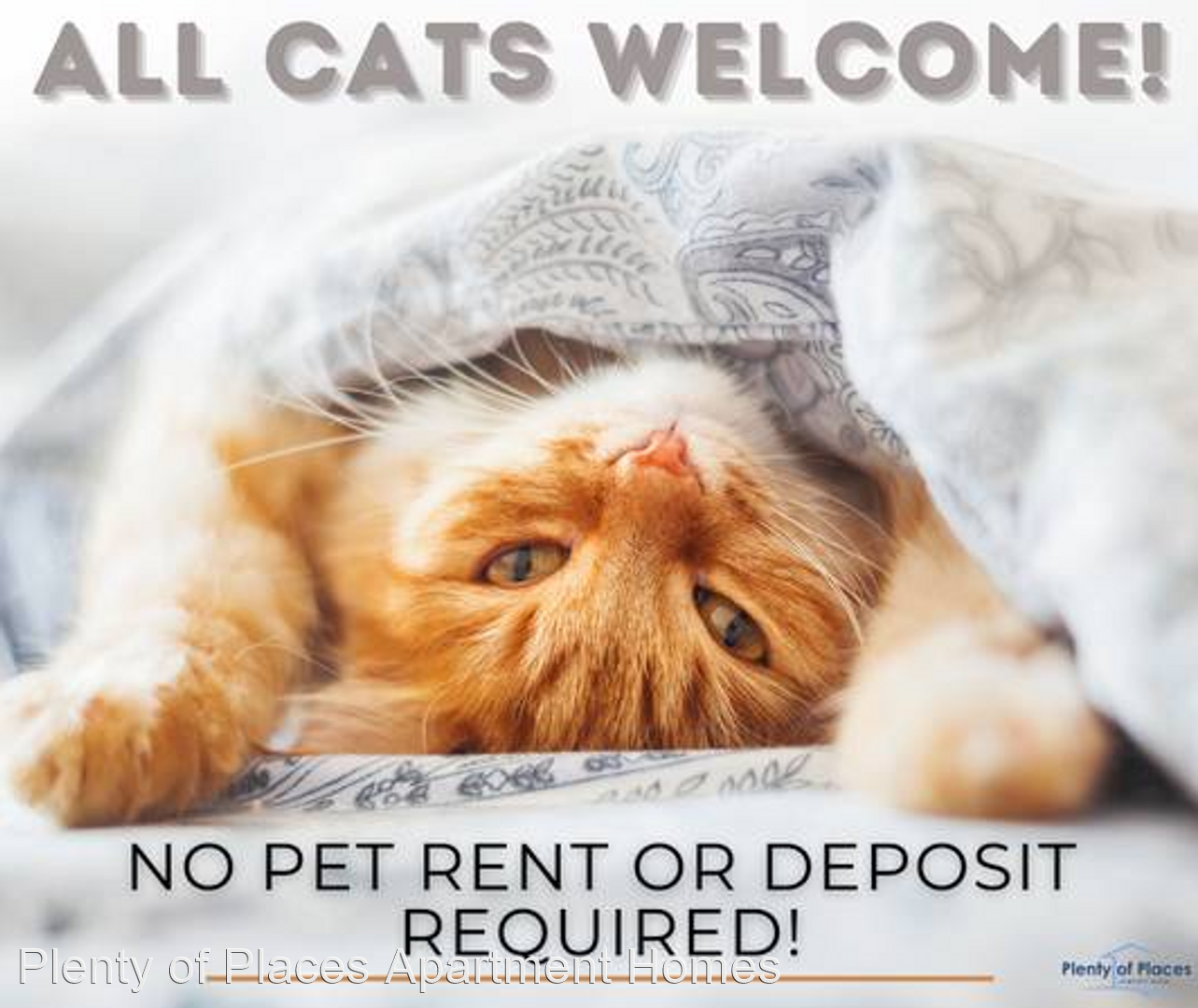 - Cats Welcome, NO PET DEPOSIT.